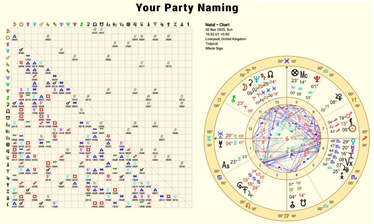 "Your Party" has been named under a sky of high drama. It has the voice of a prophet (Sagittarius), the fists of a boxer (Aries), but the feet of a dreamer (Pisces). If the Saturnian leadership can hold the container together, the Aries membership will provide the rocket fuel. But if the Neptune fog descends, the fire may simply burn the house down.